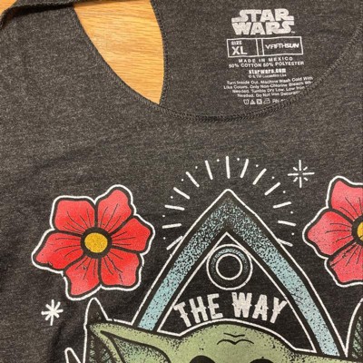 Women's Star Wars The Mandalorian The Child Flower Tattoo Racerback Tank Top - Black Heather - Medium
