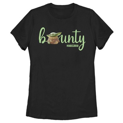 Is that a Baby Yoda? It couldn't be because this little nugget of cuteness was born after the Battle of Yavin and Yoda was born almost 900 years before that! But the similarity sure is striking isn't it? You'll be the envy of the galaxy in this Star Wars The Mandalorian The Child Text Women's Tee. Bounty hunting may be a complicated profession but figuring out how to dress yourself in the morning just got a little easier.