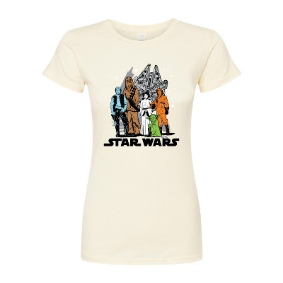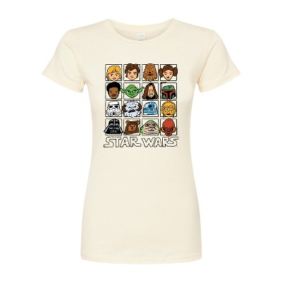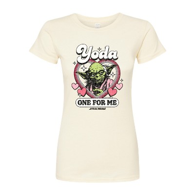 Women's Star Wars Valentine Bb8 Yoda and friends Collegiate Fitted Graphic T-Shirt - Natural - X-Large