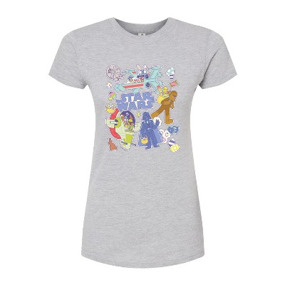 Women's Star Wars Valentine Heart Logo Fitted Graphic T-Shirt - Heather Grey - X-Large