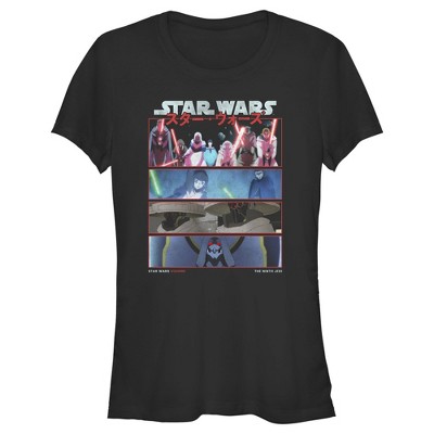 Panels from the episode "The Ninth Jedi" from the new series Star Wars: Visions from Disney+ appear across the front of this fun Women's Tee.