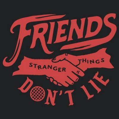 • Strut your stuff with this stylish new Stranger Things Women's Racerback Tank Top that is perfect for Halloween! Featuring a red print of shaking hands, a waffle, and the text "Friends Don't Lie" across the front.