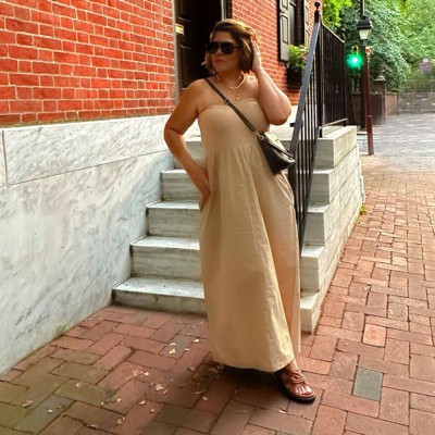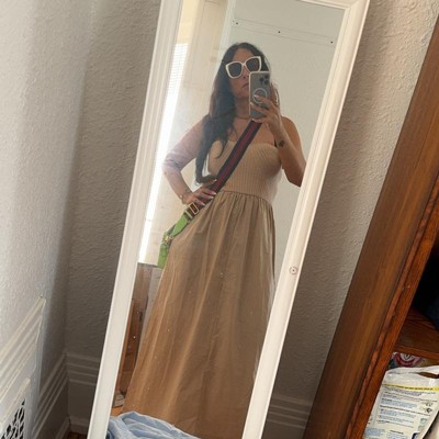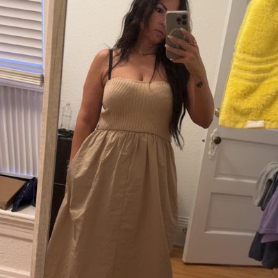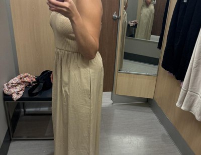 Add a chic, comfy piece to your casual wardrobe with this Strapless Midi Sweater Dress from Universal Thread™. Fashioned in a midi length, this strapless sweater dress features a ribbed bodice for a smart look that's perfect for a variety of occasions. It's made from lightweight poplin fabric for comfortable wear, while the side pockets add functional detail to your look. Complete the casual look with strappy slippers and shades.