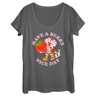 • Enjoy comfort and fashion at the same time with this unique women's graphic scoop neck tee design from Strawberry Shortcake.