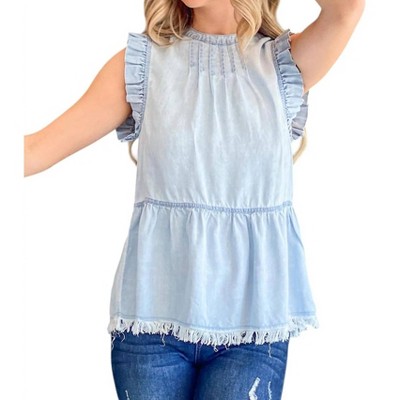 Women's STRIPE VNECK RUFFLE BABYDOLL TANK TOP - Haptics S