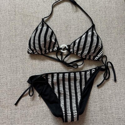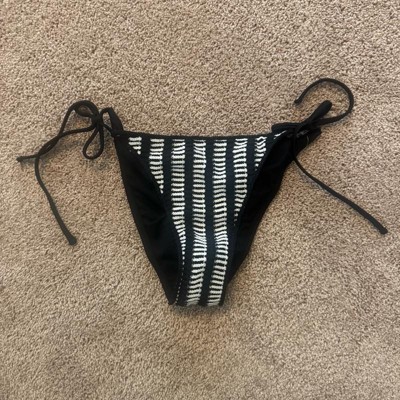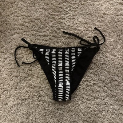 String bikini bottom from Wild Fable™ with a striped crochet design. Features side-tie fastenings to provide a personalized fit. Made from recycled polyester fabric with spandex and full lining for flexible comfort in and out of the water. Extra-cheeky coverage and a low-rise, high-leg silhouette finish off the chic look.