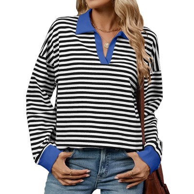Women's Striped Oversized Sweatshirt Pullover Polo Shirt Color Block V Neck Long Sleeve Top - 2 of 4Women's Striped Oversized Sweatshirt Pullover Polo Shirt Color Block V Neck Long Sleeve Top - 3 of 4Women's Striped Oversized Sweatshirt Pullover Polo Shirt Color Block V Neck Long Sleeve Top - 4 of 4