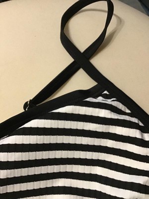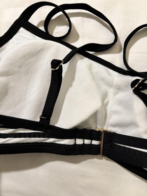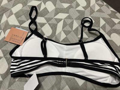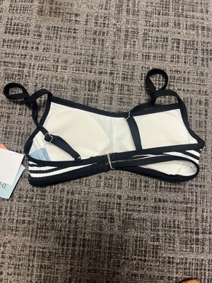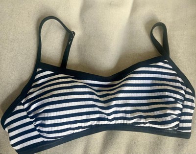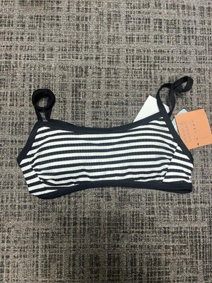 Channel timeless style with this Striped Ribbed Bralette Bikini Top from Shade & Shore. Made from soft, stretchy fabric with partial lining, this bikini top showcases a ribbed texture and stripes for an elevated look. The slim shoulder straps with buckles and a back strap with a hook-and-loop fastener complete the design and provide a personalized, stay-put fit.