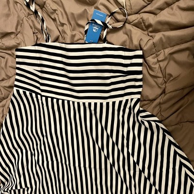 • Striped spaghetti strap bodice with a flattering fit