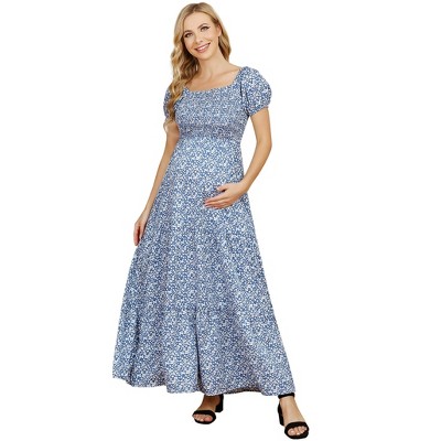 Women's Summer Beach Boho Ruffle Trim Dresses Sleeveless Swing Flowy Vocation Tiered Sun Dress,Blue print,M