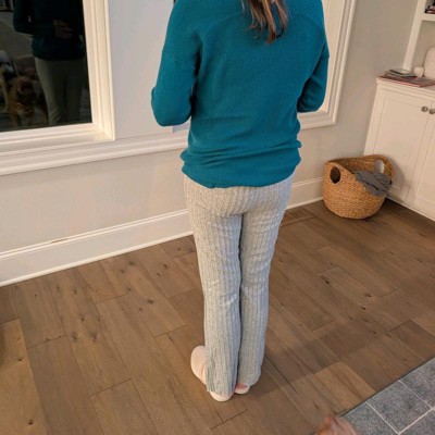 [This review was collected as part of a promotion.] I purchased these lounge pants from Target in size small which I am a size 4 and these fit true to size. I love that the pants are super soft and cozy—perfect for relaxing at home! The ribbed texture gives them a cute, slightly elevated look compared to basic sweatpants, and the fit is flattering without being tight. They have just the right amount of stretch and feel really comfortable for everyday wear or lounging. The only downside is that the material is quite thin, so they’re best for warmer weather or indoor wear rather than cold days. Might be good to layer under jeans for extra warmth.