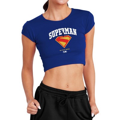 Women's Superman 2025 Krypto Sky Cap Sleeve Baby Rib Crop Top