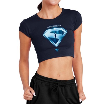 Women's Superman Cloud Shield Cap Sleeve Baby Rib Crop Top