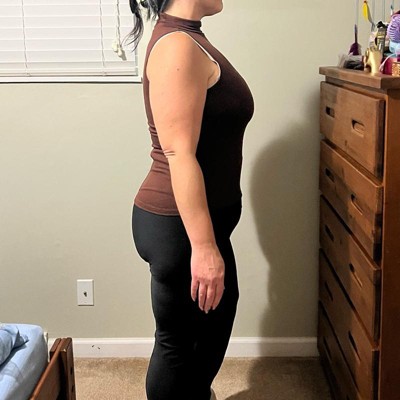 [This review was collected as part of a promotion.] Elevate your essentials with this tank top by universal thread crafted from rayon’s bandanna blend fabric the solid tank top hugger silhouette with just the right support. It has a mock turtleneck top. The fabric is super thin, lightweight, and stretchy. It comes in a nice rich brown color. I’m typically a size 12 to 14. In order to this in a size large, it fit very well perfect for layering