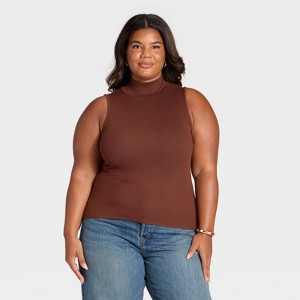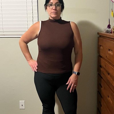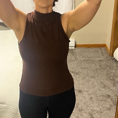 Brown mock turtleneck tank for layering
