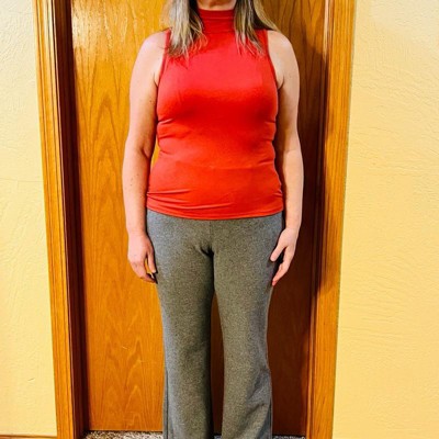[This review was collected as part of a promotion.] This mock turtleneck tank top is a size large and fit me true to size. I am about five feet five inches tall and this fit great. The material was extremely soft and comfortable. The shirt had a little bit of stretch to it as well, which added to the comfort. I love that this will work well on its own or can be paired with a jacket or cardigan. The turtleneck was not restrictive which was appreciated. I received an incentive to write this review.