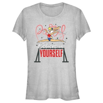 • Strut your stuff with this stylish new women's t-shirt that is perfect for every occasion! Featuring rhythmic gymnast Lola Bunny performing and writing the word "Paris" with her ribbons, stars all around her, and the inspirational phrase: "Believe in Yourself" printed in white and red below.