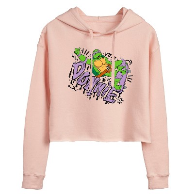 Women's Teenage Mutant Ninja Turtles Donnie Cropped Graphic Hoodie - Blush - Medium