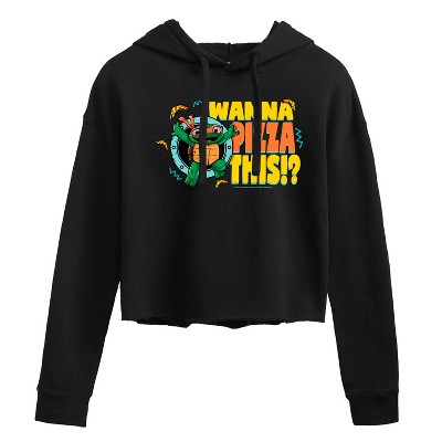 Teenage Mutant Ninja Turtles: Mutant Mayhem - Michelangelo AKA Mikey - Pizza Rules - Juniors Cropped Pullover Hoodie - Unleash your inner hero with Teenage Mutant Ninja Turtles graphic apparel, featuring bold and colorful designs of the iconic heroes in a half shell—Leonardo, Donatello, Raphael, and Michelangelo. Perfect for fans of all ages, this collection celebrates the action-packed adventures, brotherhood, and fun-loving spirit of these legendary sewer-dwelling ninjas.