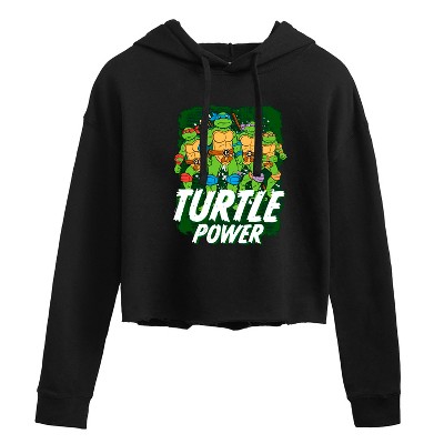 Women's Teenage Mutant Ninja Turtles Mutant Mayhem Turtle Time Cropped Graphic Hoodie - Black - Large