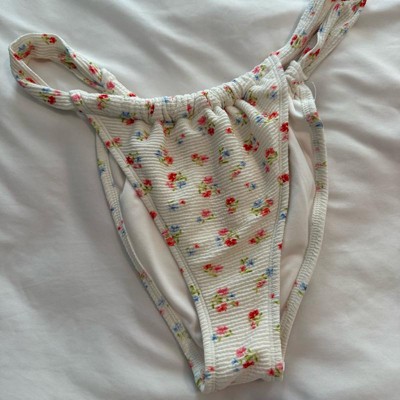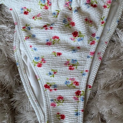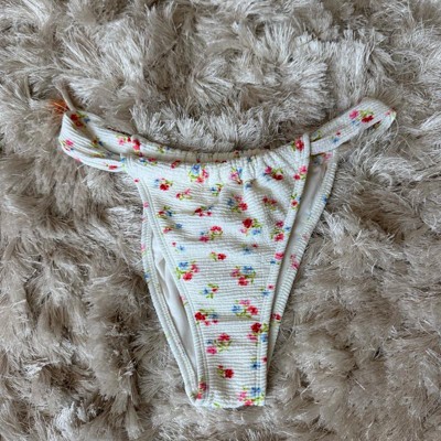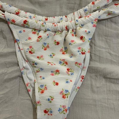 Women's Textured Floral Print Low-Rise High Leg Cheeky Bikini Bottom - Wild Fable™ Cream XXS