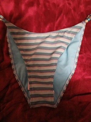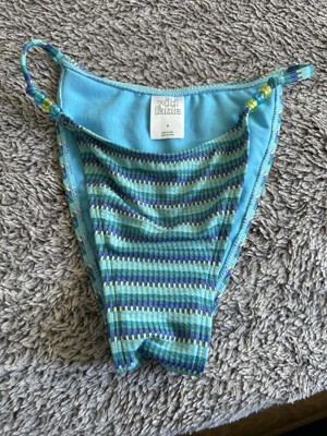 Textured bikini bottom from Wild Fable™ with bead-detailed sides . Made from recycled polyester with spandex and full lining for flexible comfort in and out of the water. Extra-cheeky coverage and a low-rise, extra-high-leg silhouette with elastic at-leg openings finish the chic look.