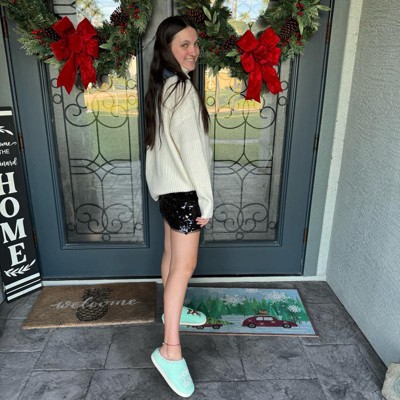 I normally don’t do reviews, but this sweater is worth all of the hype! I typically wear an XS, but I sized up to a M for an oversized fit and love it. It doesn’t shed and it’s warm and cozy with a pair of leggings and boots. Go get it!