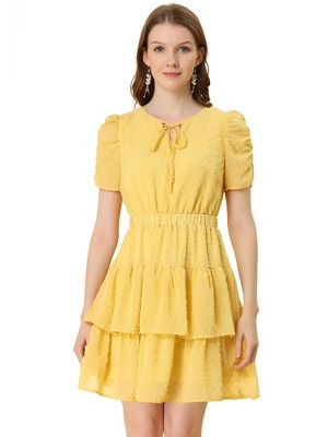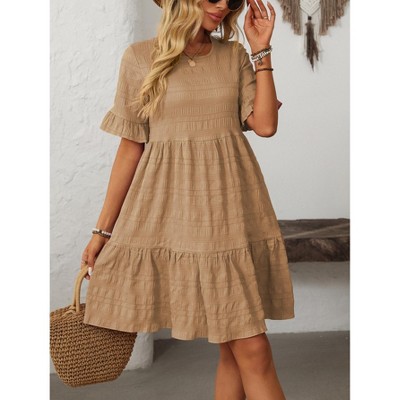 Women's Textured Short Sleeve Dress Ruffled Hem Tiered A-Line Dress