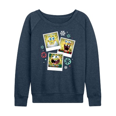 Women's The Bad Guys Mr. Wolf and Friends Collage Lightweight French Terry Wide Neck Long Sleeve Graphic Shirt - Heather Indigo - Medium