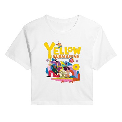Women's The Beatles Beatles Yellow Cropped Graphic T-Shirt - White - Small