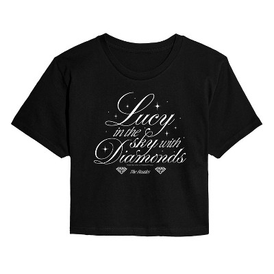 Women's The Beatles Jumping Silhouettes Cropped Graphic T-Shirt - Black - Small