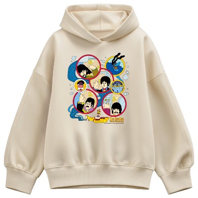 Women's The Beatles Retro Flowers Oversized Fleece Hoodie Sweatshirt - Cream - Medium