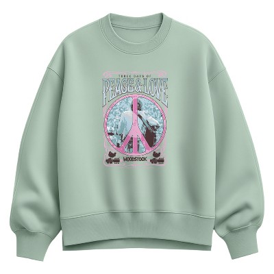 Women's The Beatles Strawberry Fields Forever Oversized Fleece Crew Sweatshirt - Seafoam - Large
