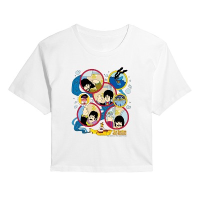 Women's The Beatles Yellow Sub Cropped Graphic T-Shirt - White - 2 X-Large