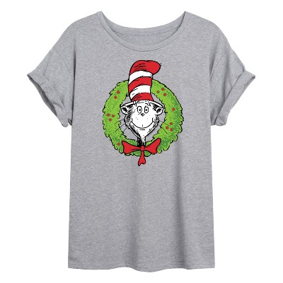 Women's The Cat in the Hat Cat Wreath Short Sleeve Graphic T-Shirt - Heather Grey - 2 X-Large