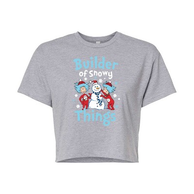 Women's The Cat in the Hat Cropped Graphic T-Shirt - Heather Grey - X-Large