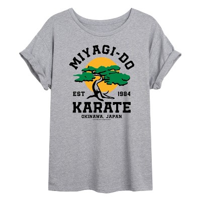 The Karate Kid - Logo Stack - Women's Oversized Graphic T-Shirt - Channel the spirit of determination and discipline with graphic apparel inspired by The Karate Kid. Featuring iconic imagery like the crane kick, Miyagi-Do and Cobra Kai logos, and memorable quotes, each design pays tribute to the classic story of perseverance and honor. Perfect for fans, these pieces blend retro style with timeless inspiration.