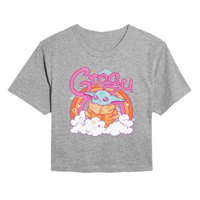 Star Wars - Grogu Flowers - Juniors Cropped Short Sleeve Graphic T-Shirt - Embark on an epic adventure with our officially licensed Star Wars graphic apparel collection! Celebrate the legendary saga with bold, iconic designs featuring your favorite characters, ships, and moments from a galaxy far, far away. Whether it's the fearless Luke Skywalker, the powerful Darth Vader, the wise Yoda, or the unforgettable Millennium Falcon, each piece captures the magic and excitement of the Star Wars universe. From graphic tees and hoodies to sweatshirts, this collection combines comfort with striking artwork that showcases the timeless appeal of the Star Wars story.