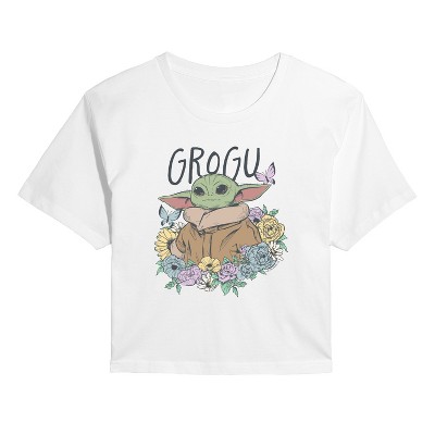 Women's - Star Wars - Grogu Flowers Cropped Graphic T-Shirt