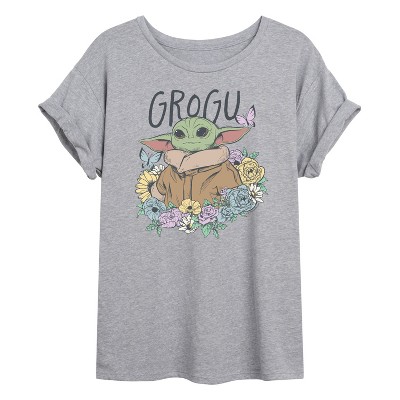 Women's - Star Wars - Grogu Flowers Oversized Graphic T-Shirt