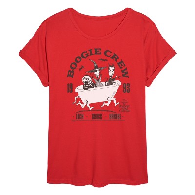 Women's The Nightmare Before Christmas Boogie Crew Short Sleeve Graphic T-Shirt - Heather Red - X-Large