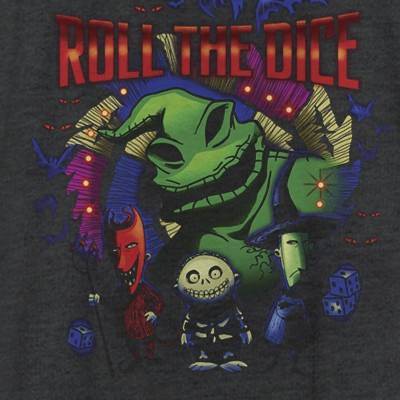 Make your way to Halloweentown and join the fun in this officially licensed Disney's The Nightmare Before Christmas Halloween Oogie Roll The Dice Women's Racerback Tank Top! This festive tank's design features a smiling, yet creepy, Oogie Boogie looming over Lock, Shock, and Barrel, surrounded by details like dice, bats, and menacing red eyes. You will not want to miss out on this garment that is perfect for Halloween AND Christmas, as the movie itself. What's this? You can find more Halloween apparel here!