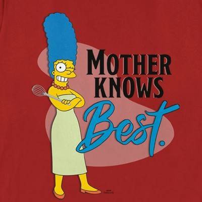 • Strut your stuff with this stylish new Mother's Day women's t-shirt that is perfect for mom! Featuring Marge Simpson smiling big and winking alongside the text "Mother Knows Best" in black and blue lettering.