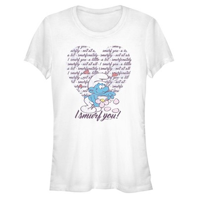 Follow the adventures of your favorite tiny blue creatures as they embark on a Valentine's Day filled with love, surprises, and heartwarming moments with this new officially licensed The Smurfs I Smurf You Women's Graphic Relaxed Fit T-Shirt! This holiday-themed design features the adorable Vanity Smurf picking one petal off a flower with the phrases: "I Smurf You - A Little- A Lot- Smurfonately" printed and repeated inside a heart. Whether you're with your one and only or single and ready to mingle, get ready to Smurf your way through the season of love!