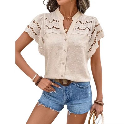 - Flowing bell sleeves with ruffled cuffs deliver a soft, graceful drape¡ªwear it alone for a statement look or layer it effortlessly under blazers and cardigans.