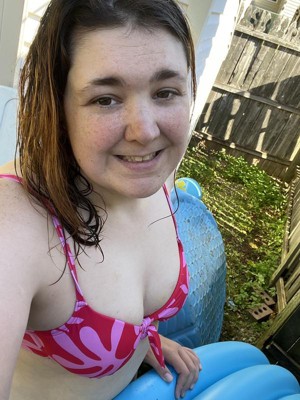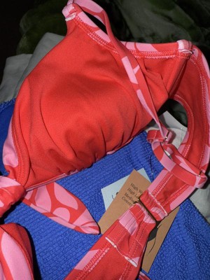 The Shade & Shore™ Red Floral Print Women's Tie-Front Underwire Bikini Top is super cute and comfortable. Be sure to try it on to get the right cup size, there isn't much give if you don't get it right.