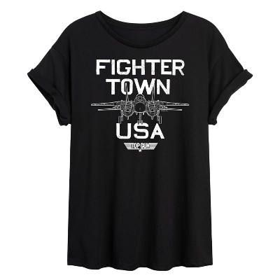 Women's Top Gun Property of Fighter Town Short Sleeve Graphic T-Shirt - Black - Medium