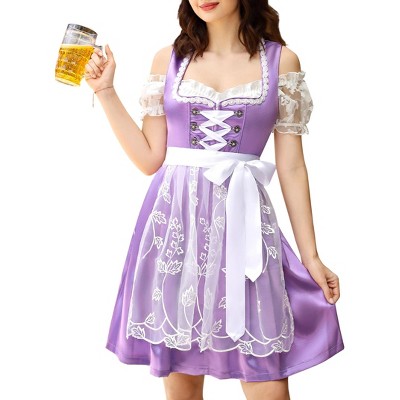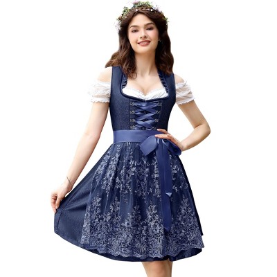 Comes with a detachable short - sleeve blouse featuring lace trim, adding modesty and styling flexibility. Wear it under the dirndl for a traditional look or style it separately for modern versatility.