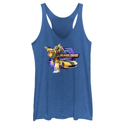 Long after the end of the civil war between the Autobots and the Decepticons, witness the birth of a new breed of Earth-born Transformers called Terrans, in the new animated cartoon series Transformers: EarthSpark. This officially licensed Transformers Women's Graphic Racerback Tank Top features Bumblebee along with his name across the front! If you were looking for fashion that is "more than meets the eye", look no further than our Transformers apparel!