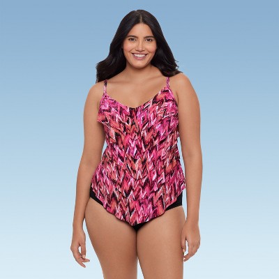 Trimshaper Women's Ronnie Two Tier Ruffle Tankini Swimsuit Top - 1 of 4